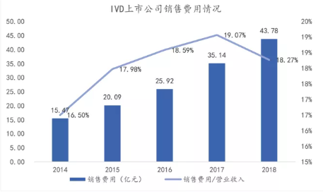 5、我國IVD上市公司銷售費(fèi)用占比呈上升趨勢