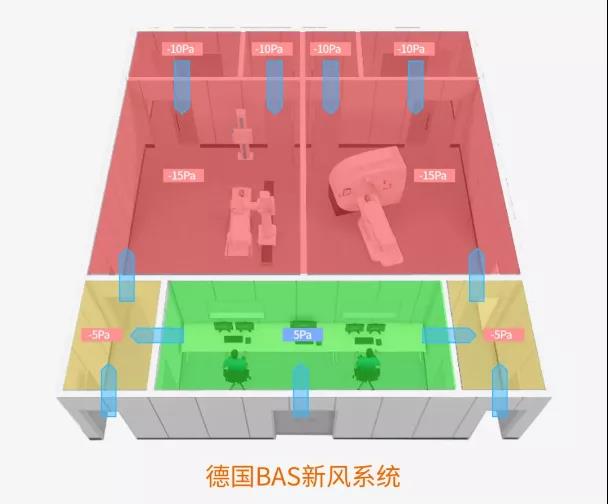 西門子醫(yī)療德國抗疫BAS新風方案,使操作室從原來的“黃區(qū)”半污染區(qū)變?yōu)榘踩摹熬G區(qū)”清潔區(qū)