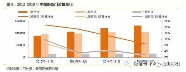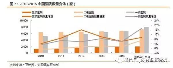 注:2015年醫(yī)院數(shù)量衛(wèi)計(jì)委只有1-11月數(shù)據(jù),但不影響整體趨勢和判斷。