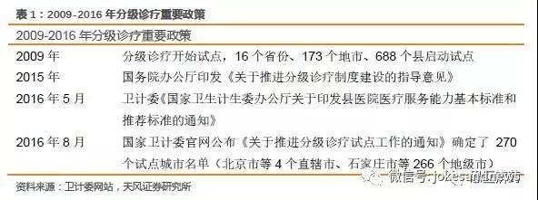 2009年國家開始嘗試分級診療,各地區(qū)進(jìn)行小范圍試點(diǎn),但效果相對不明顯。2016年分級診療作為一個(gè)重要的民生課題又被持續(xù)推上風(fēng)口浪尖,各種政策密集出臺。