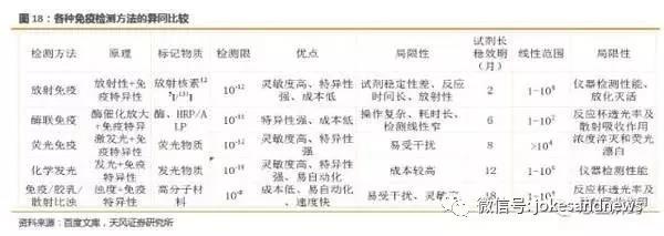 化學(xué)發(fā)光大部分項(xiàng)目為三類注冊,由儀器試劑組成封閉系統(tǒng),無開放系統(tǒng),技術(shù)門檻高,準(zhǔn)入難,具有先天護(hù)城河優(yōu)勢?;瘜W(xué)發(fā)光屬于體外診斷子行業(yè)中的免疫分支,臨床免疫廣義包括以抗原抗體結(jié)合為原理的所有產(chǎn)品,包括化學(xué)發(fā)光、酶聯(lián)免疫、膠體金、放免、生化中的免疫比濁和膠乳項(xiàng)目、特種蛋白儀等。狹義的臨床免疫通常指化學(xué)發(fā)光,該名稱取決于其方法學(xué)信號檢測的特點(diǎn)。不同的免疫學(xué)方法有不同的應(yīng)用場景和優(yōu)劣勢,具體如下表所示:
