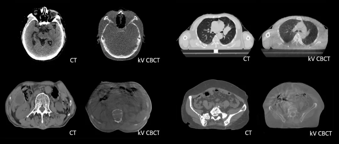 診斷級(jí) CT對(duì)比kV-CBCT影像,更好地顯示器官和軟組織的邊界和細(xì)節(jié)