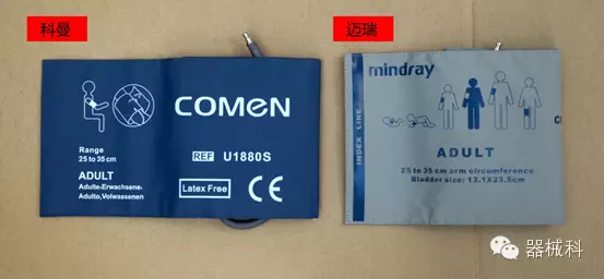 兩家都采用防水面料和薄膜氣囊??坡伾?,不知道是不是因?yàn)樯钌团K。袖套看起來要厚點(diǎn),不過摸起來也一樣柔軟。邁瑞是不經(jīng)臟的白色,拿起來會(huì)發(fā)現(xiàn)更柔軟?;蛟S是深色顯得明亮,對(duì)比之下,總覺得邁瑞的袖套看起來舊舊的。