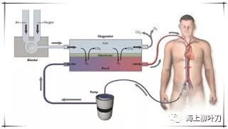 葉克膜其實很簡單,就是靜脈血引流出來,經(jīng)過一個血液泵(人工心臟),再經(jīng)過一個氧合器(人工肺臟),送回身體。它用來暫時取代心肺功能。