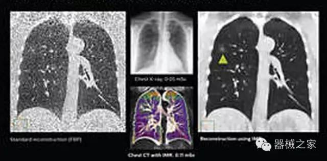 透過數(shù)字化影真芯片DAS系統(tǒng)、球面微平板探測(cè)器技術(shù)和濾線柵技術(shù)等硬件技術(shù),整體提高探測(cè)器成像的能力,奠定低劑量條件下高清成像的基礎(chǔ);